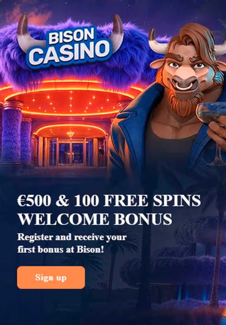 Bison Casino is an internationally acclaimed Casino that offers hundreds of excellent games, including live games provided by over forty-seven different software providers. The games are colorful and exciting, giving players a rewarding and interactive experience with big payouts, interesting stories, and direct action. New players once signed up receive the gift of 50 free spins per day every day for six days, and following this, there are many other bonuses and special offers players can enjoy at the Casino, including match-up offers, free spins, instant payouts, and special competitions. The more a player invests and plays at the Casino, the more fun he has and the more winnings he can earn.